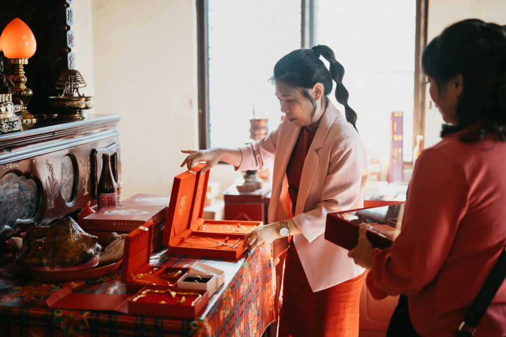而當天阿嬤、媽媽、姑姑都特別準備金飾